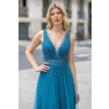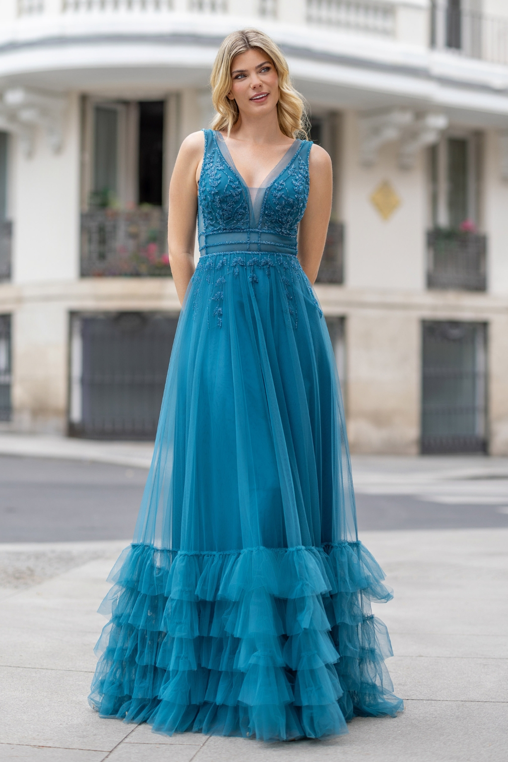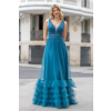 Petrolejové společenské/plesové šaty Erika s tylovou sukní volánky kolekce Christian Koehlert