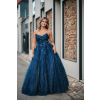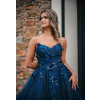 Třpytivé tmavě modré společenské šaty, které okouzlí svou elegancí i propracovanými detaily. Objemná tylová sukně působí vzdušně a slavnostně, zatímco živůtek bez ramínek krásně zvýrazní dekolt a ramena. Korálkové zdobení dodává šatům luxusní vzhled, díky kterému budete na maturitním plese nebo jiné výjimečné události naprosto nepřehlédnutelná.