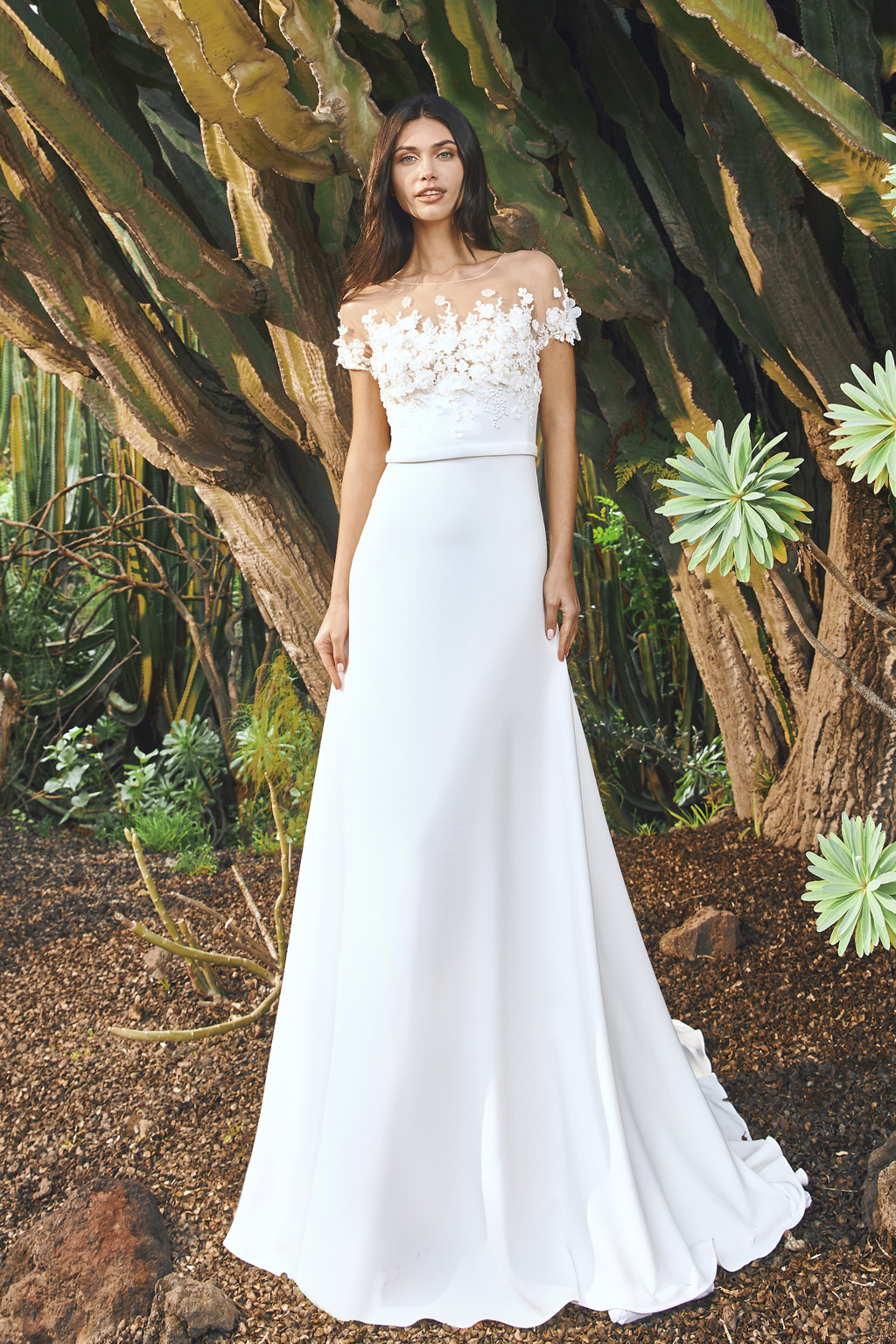 Svatební šaty Masurian s květinovým živůtkem kolekce Pronovias