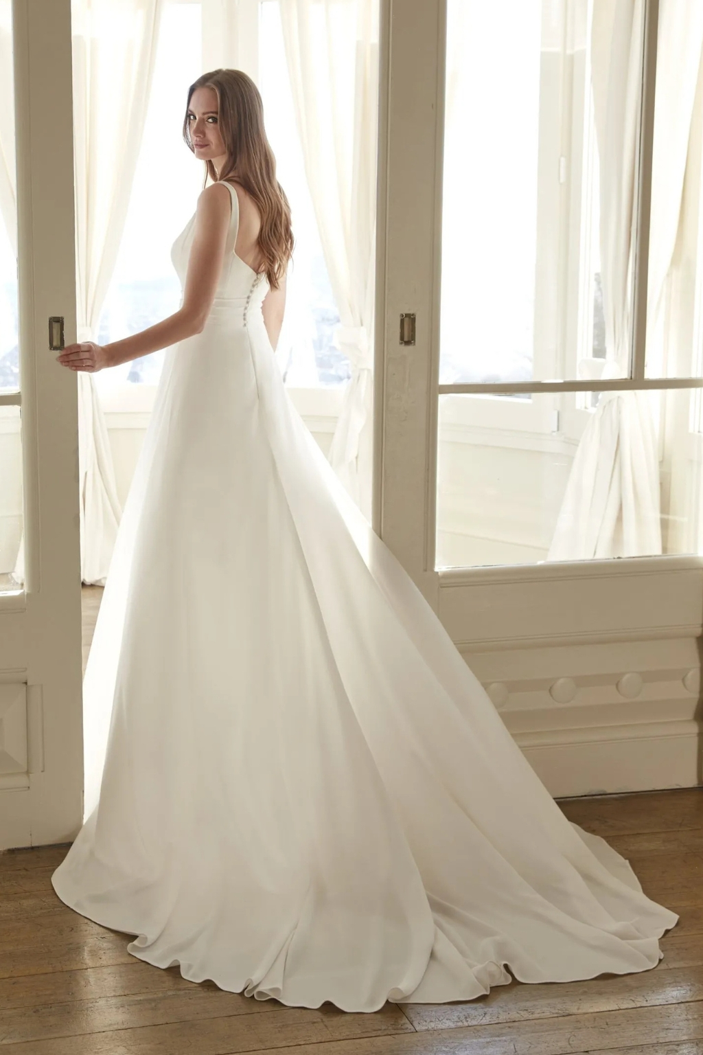 Svatební šaty Rohesia s hladkou krepovou sukní kolekce House of St. Patrick 2026