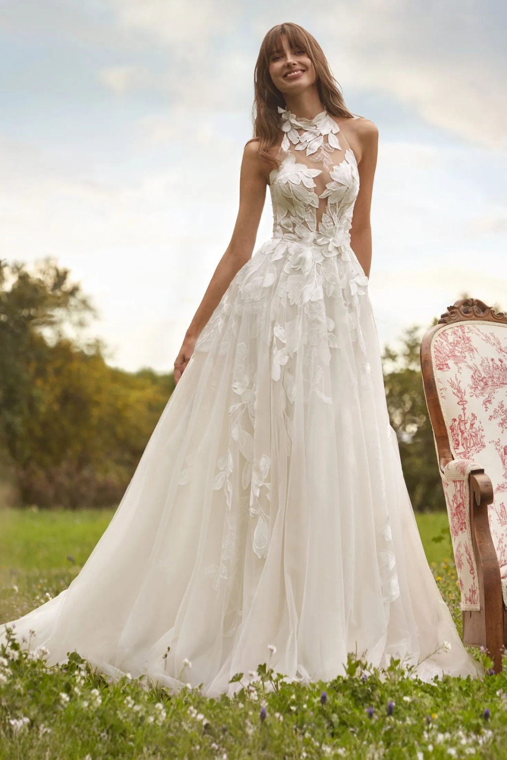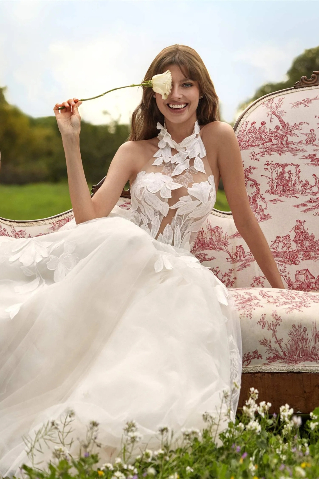 Svatební šaty Jaelle s květinovým zdobením kolekce Nicole Milano 2026