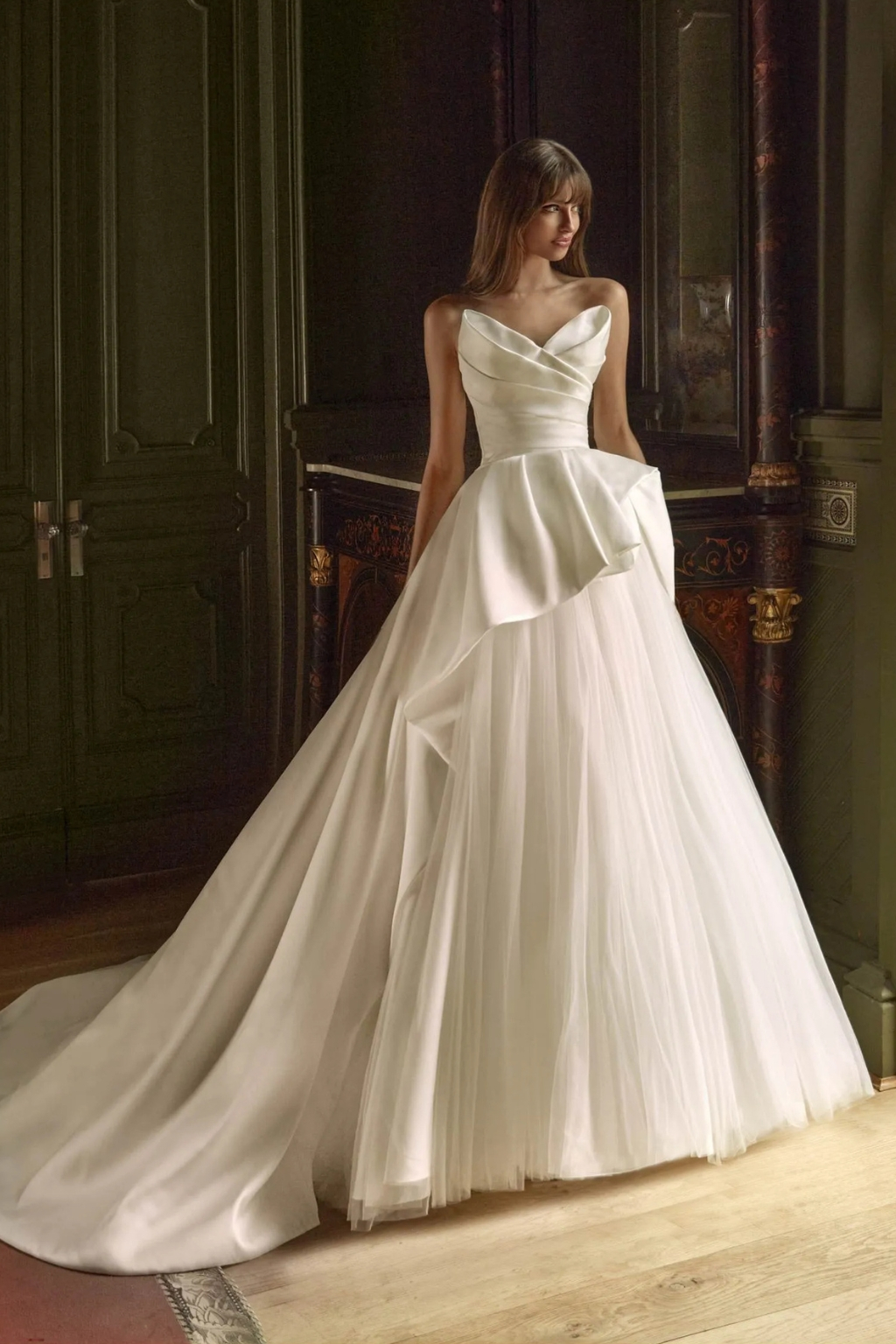 Svatební šaty Maialyn s objemnou sukní s vlečkou kolekce Nicole Milano 2026